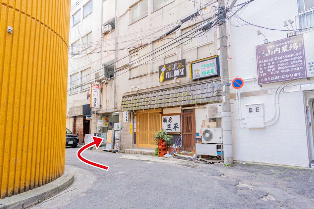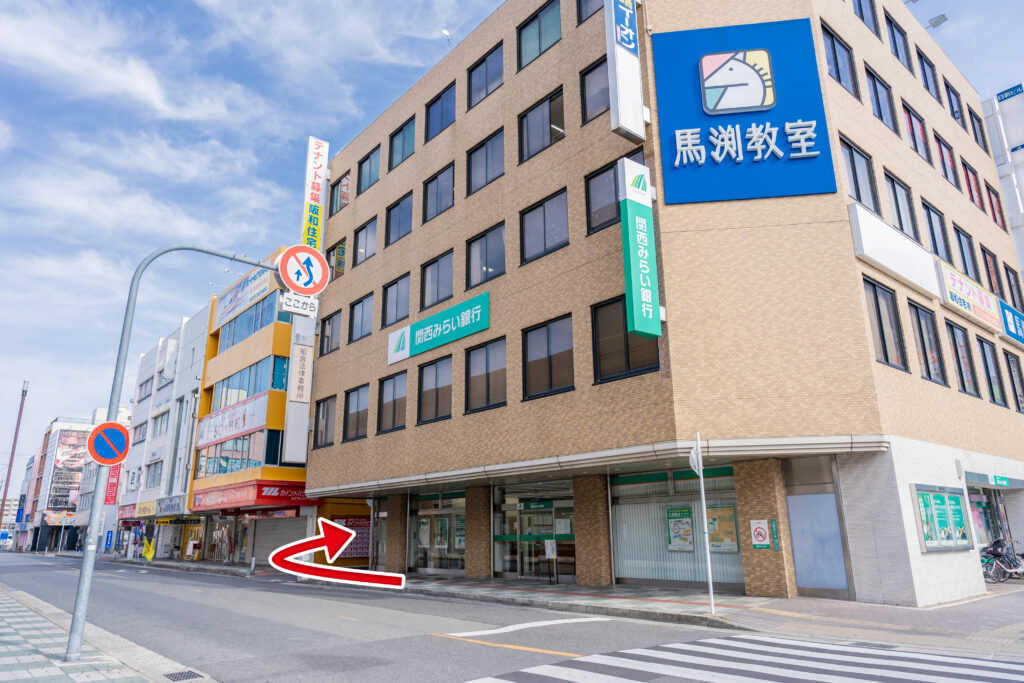 横断歩道を渡って「関西みらい銀行」を右手側にして進み