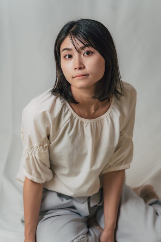 トップバッターは私から。本格的なスタジオでの撮影は高校の卒業アルバム以来だったのでちょうど10年ぶり。そのためとても緊張しました。その緊張した様子は最初の写真にもしっかりと現れていました。