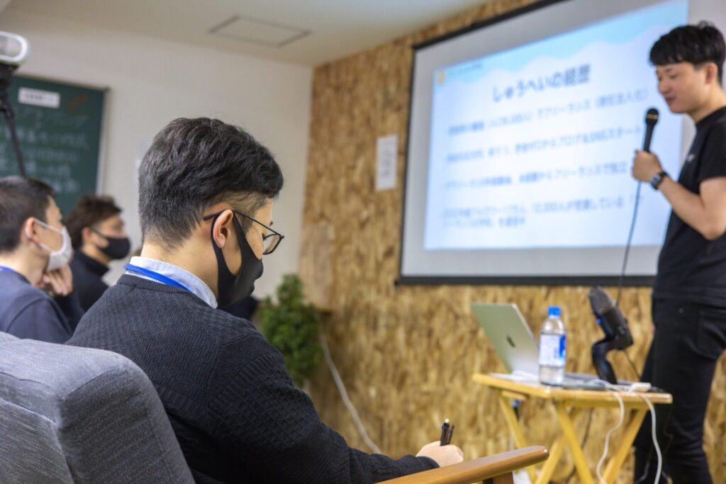 ですが、登壇者は知人でもなく、4年前からTwitter、Voicyなどでずっと追いかけていたしゅうへいさん。