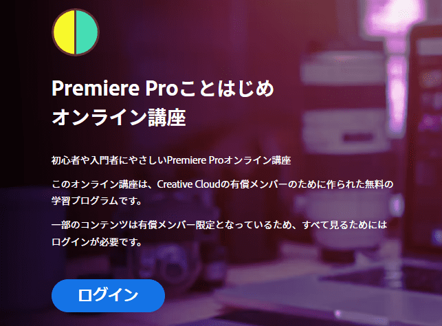 Adobeのソフトがすべて使えるライセンスに「AdobeCC」があります。AdobeCCに契約していると無料でうけられるのが、「PremiereProことはじめオンライン講座」です。