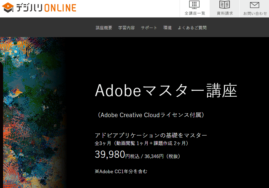 AdobeCCのライセンスとセットになって動画編集を学べるのが、「デジハリAdobeマスター講座」です。