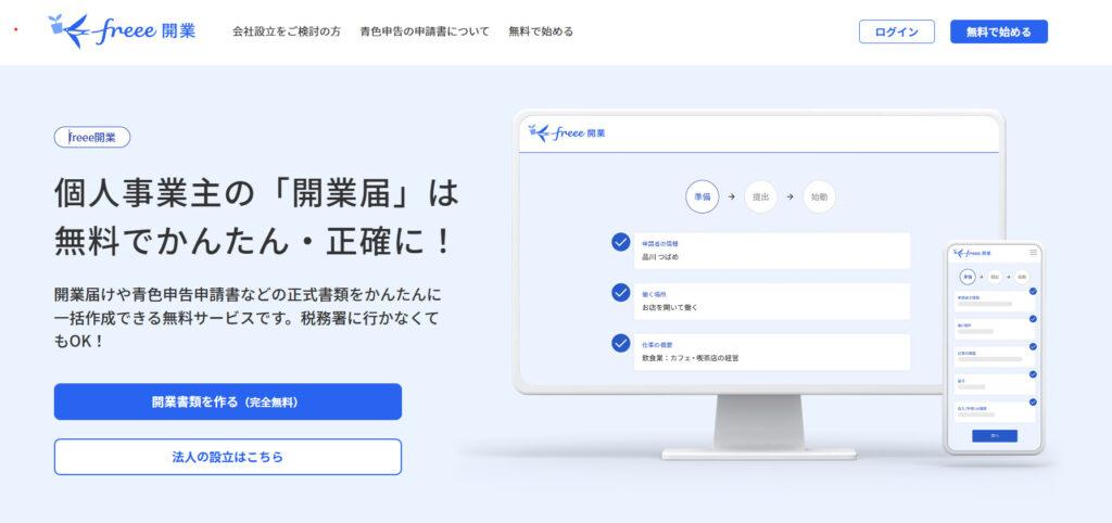 サービスの中に「freee開業」があり、簡単に開業届を作成することが可能です。
