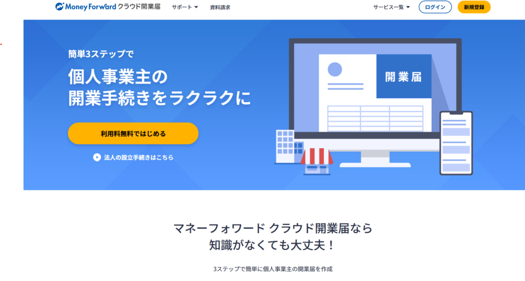 マネーフォワードの中に「クラウド開業届」のサービスがあり、開業届の書き方がわからない人でも気軽に作成が可能です。