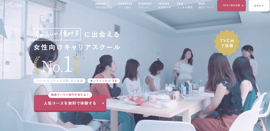 SHElikesは定額制のスクールで、全38種類のコースから学びたい講座を選べます。